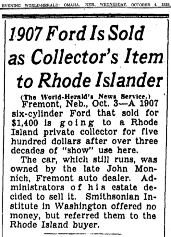 Model K #808 had a few more important events while in Nebraska. The Storz met the German Protos racer in the New York to Paris race in 1908, and piloted it across part of eastern Nebraska: