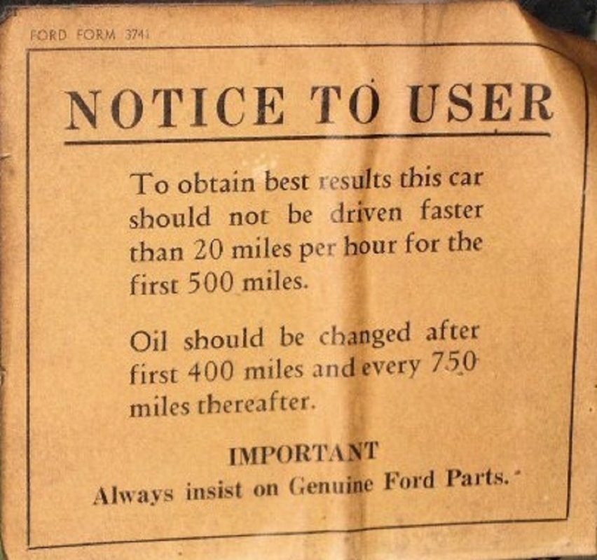 And new cars to maintain only 20mph for break-in. Average speed then was likely 25mph, and today likely 30-35mph.