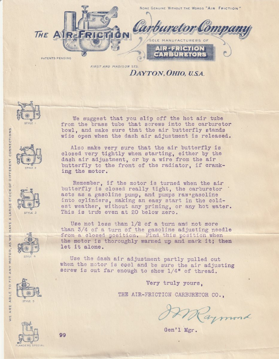 Re: Air Friction carburetor instructions and other literature