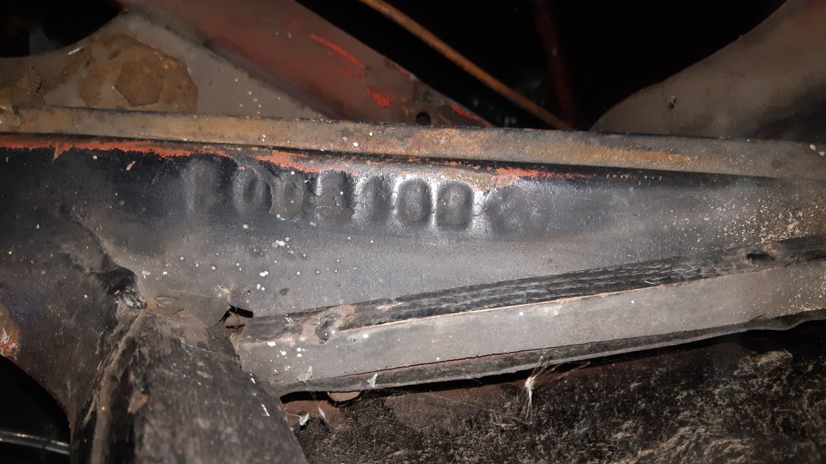 In the passenger side I find the bollowing stamped in the steel support for the floor board: BO 05182 and then some logotype.