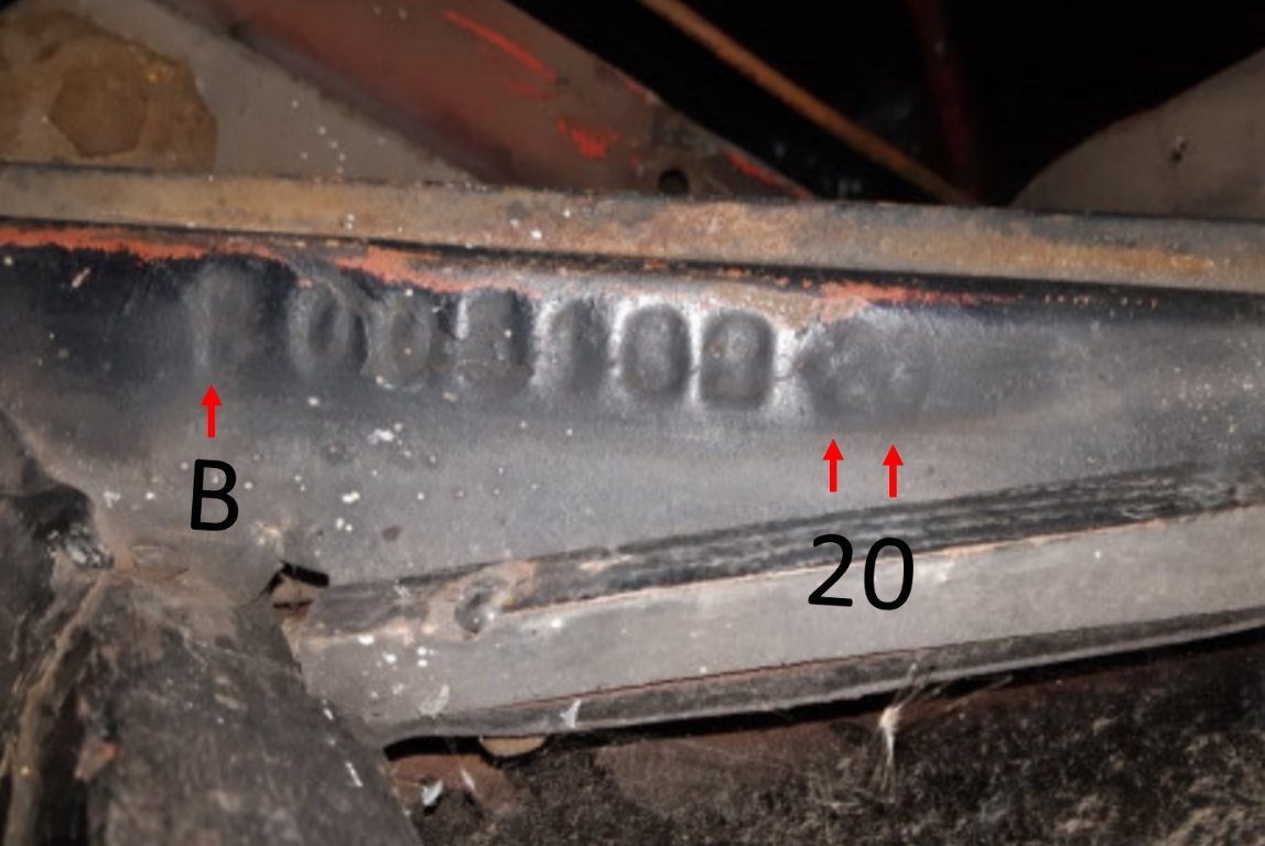 Your photo above is typical for a later 1920’ish body produced by Beaudett (also spelled Beaudette and referred to as Pontiac in many of the Ford USA records). It appears that Beaudett had a better stamping machine for the B and next 6 numbers that followed the B. Then it appears they added the year at a later time with a different stamp.