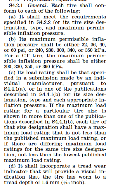 Today's tire construction and material is quite different than those made in the past. So using 100 old pressure charts arn't likely to be applicable. Current DOT laws https://www.govinfo.gov/content/pkg/CFR ... 71-109.pdf
