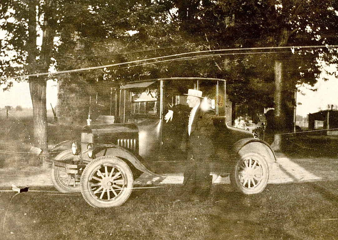 Fifth picture, a 1924 or 1925 model T coupe. In addition to the "through the windshield" spotlight, nice front bumper and neat dogbone radiator cap, the car has unusual wheels. They appear to be six lug demountables.