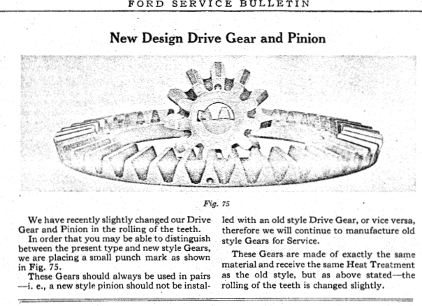 Thanks Pep. I had seen that reference to the Service Bulletin before. It is very possible that this pinion came from a Canadian built car considering where I live and most of the T's in this area, including the one I own now and one previous one, are Canadian built cars. There seems to be no end of differences, from wheels and spokes, to Touring back seat cushions and of course Robertson screws, between the US and Canadian built T's. I will clean this gear up a little to see if there are any other markings.