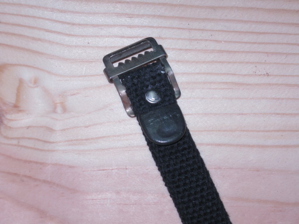 I would like to replace the 3 straps on a new Top Boot and would like to get the "correct" width material. The straps that came on the new Top Boot are 3/4" wide, but are also a synthetic material and not a woven cotton webbing. The other question that I have would be about attachment of the straps to the Top Boot. In the photo below (again, taken from a post on the old Forum) it shows the straps being riveted in place, would these have been double cap rivets or solid copper rivets and a burr. I would think that they would have been double cap rivets due to the fact/chance that either side may come into contact with other material. And would they have been riveted only or riveted and stitched? Any help or information that anyone may be willing to offer would be greatly appreciated.