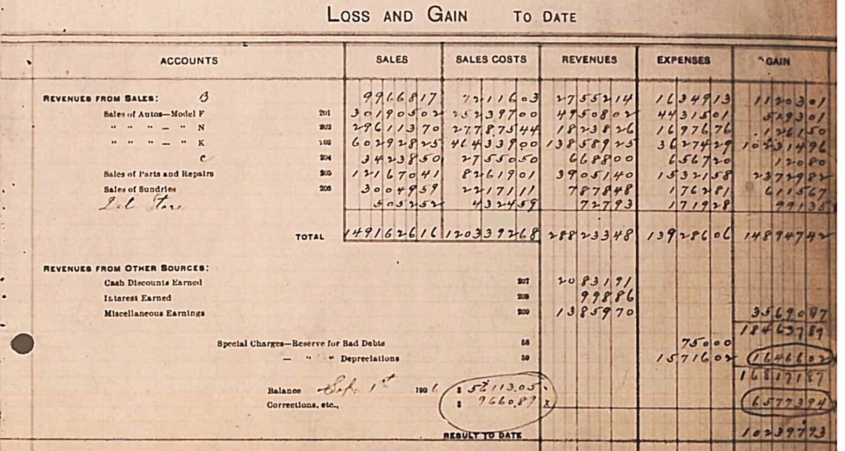 We are fortunate to have monthly audit reports for Ford Motor Co., beginning with March, 1906, and continuing into 1908. With Ford Motor Co. (FMC) fiscal and model years beginning and ending on September 30 and October 1, respectively, this means we don't have the complete 1906 fiscal year month by month. But fortunately, we do have all we need to track the production, and just as importantly, the profit of both 1906 models, K and N.