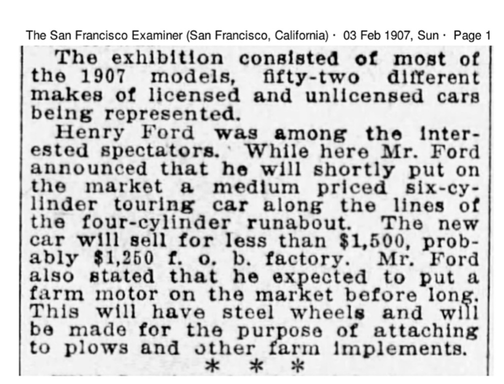 Re: 1906 was pivotal for Ford Motor Co. How the stage was set for the iconic Model T.