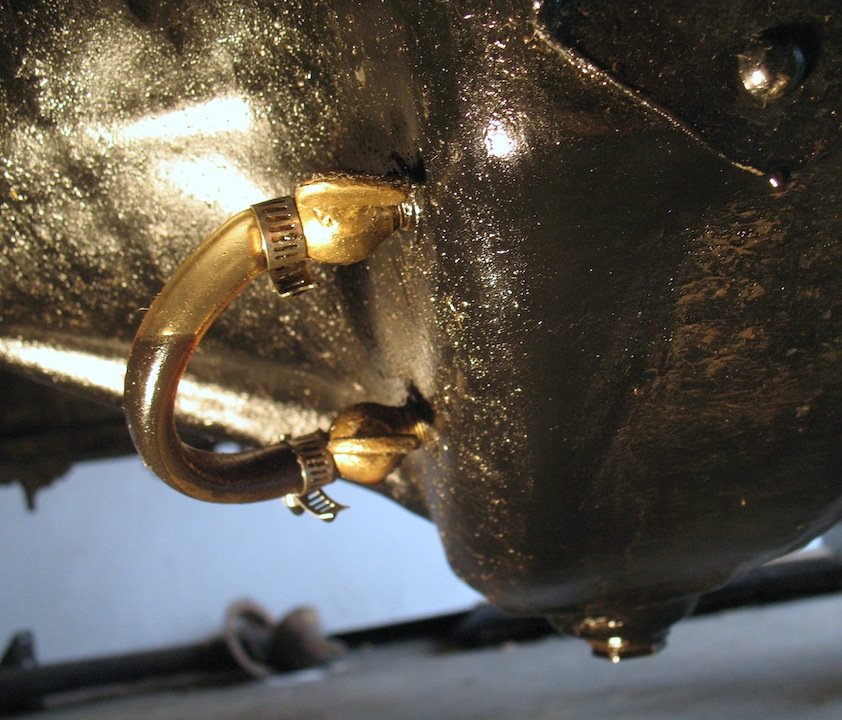 Rubber pocket watch holder and gas tank pressure pump from previously installed and removed overhead vale setup.