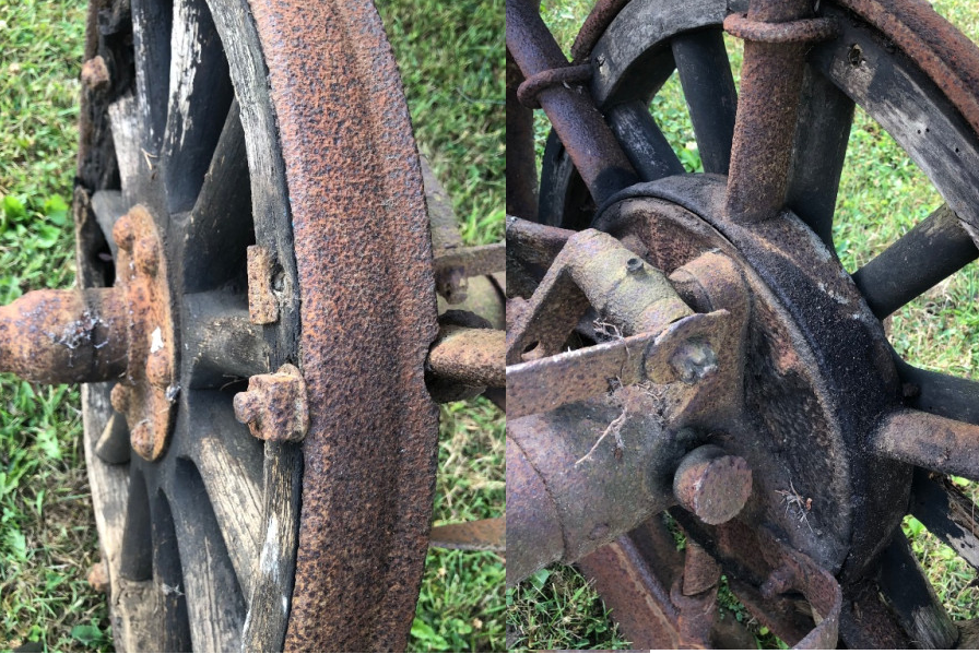 The wheels definitely need rebuilt , just wondered why they would even bother bolting the rear wood wheels to the cast iron ones ? TT rear differential, thinking the whole thing was TT at some point.