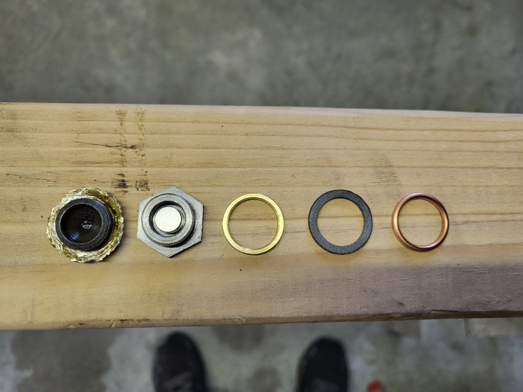 I am replacing my oil drain plug shown in the photo. I have three different types of washers. What is the best type, brass-fiber-crushable copper?
