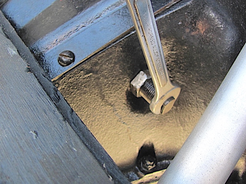 Put the clutch handle forward into high gear, so the Adj. Bolt is off the cross shaft cam.