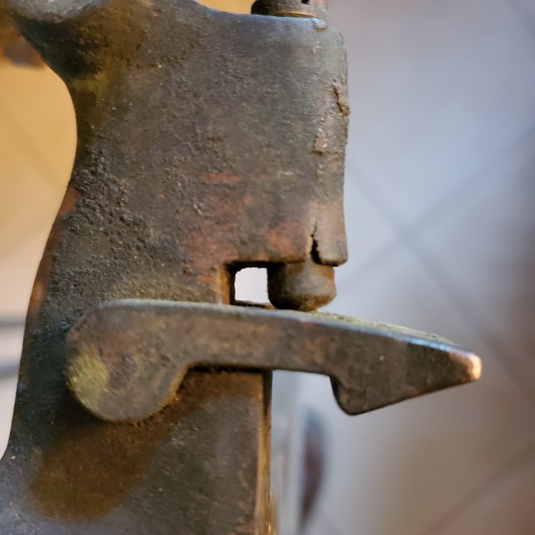 I'm thinking about annealing the smashed bracket with the distorted hole and pressing a tapered pin from the opposite side where the hole is still round. I'll support the bracket from below and re anneal when the brass begins to harden.