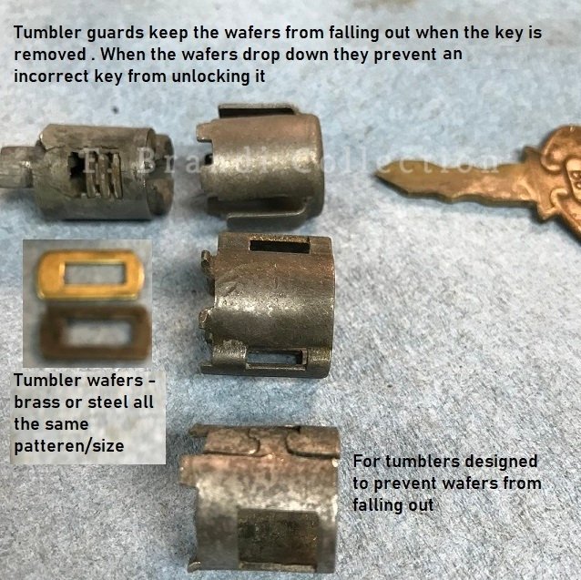 There are several different variations of the internal parts. The first variation has to do with the backing plate being a pin type or clip type. The the way the switch handle is held in place. One way requires the rivets to be removed they other does not because the handle has tabs that are bent over the square ring. You may have the easiest one to repair. The only issue is the new repro tumblers need a bit of fitting to work.
