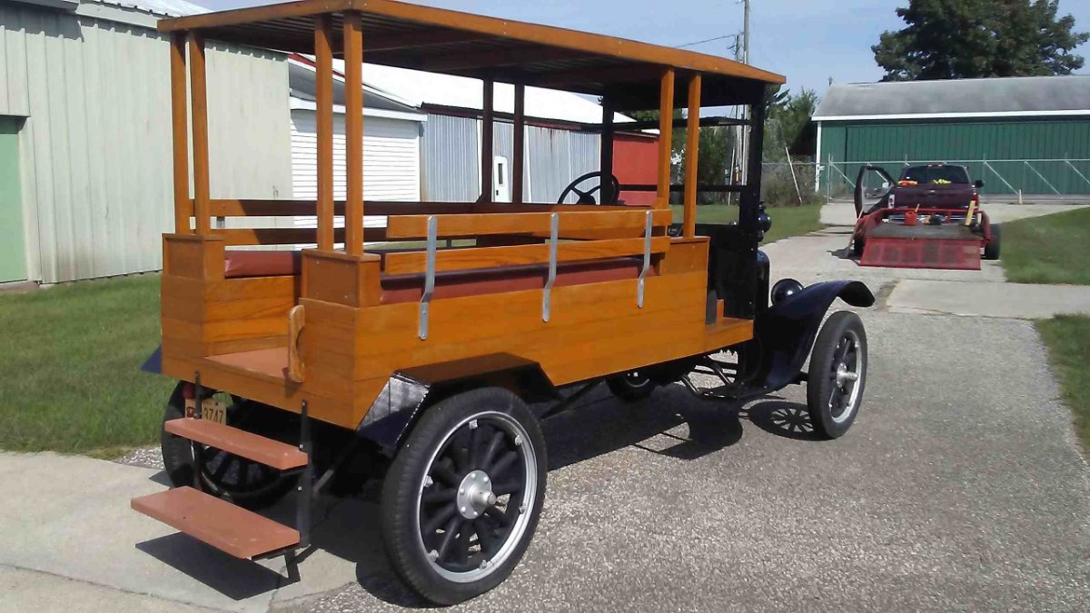 I am going to sell 2 of my 4 Model T's ( keep 2) I would rather advertise here First so they have a better chance of staying in the USA When I advertise on Ebay 4 have sold over the last 15 years overseas. I bought this cute Jittney at the Auburn Auction many years ago It was a surprise as I bought it online and BID ON THE WRONG CAR from the ones I had examined in person When it arrived we were looking at the big rear tires, then the differential. What in the heck is this? Turned out I bought my first TT Truck! I was going to use this to give tours in Key West as it comfortably seats 9 This was great though to use in parades as it was easy for folks to get in through the permanent back stairs The backstory is my family was getting it ready to ride in the local Memorial Day parade 5 years ago when we got a call my Navy Son had died of his military injuries. ( no condolences necessary) We come from a long line of Military It was just such a shock ( No we were not in the parade)