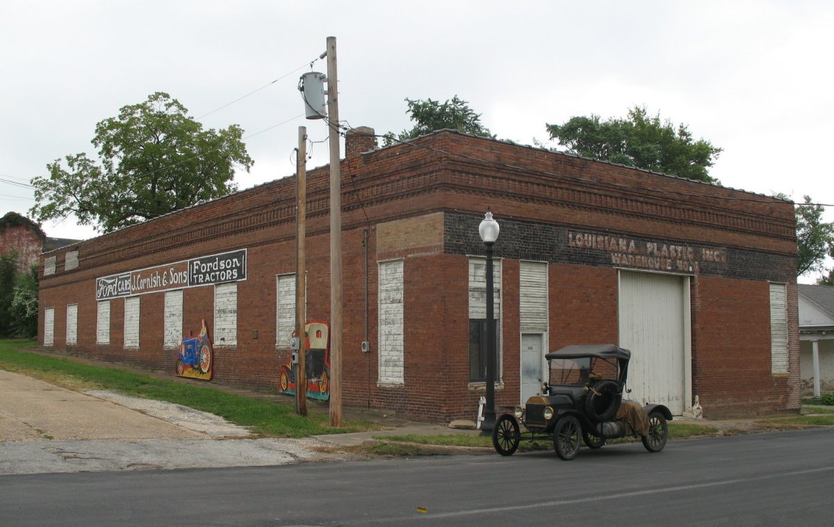 Last night's directions were pretty good, and I made it around the various bridge construction projects (at least three) without getting lost. Compared to Joplin, getting through Springfield on old 66 is a piece of cake. Straight in from the west, two or three miles north, and straight out to the east. The engine still wouldn't throttle down to an idle, racing whenever it was out of gear. As I was leaving Springfield the car faltered, sputtered, and died, coasting to the side of the road. This seemed like the old out-of-gas routine, and I was about to get a can off the running board when I noticed a growing wet spot under the car. Somehow the carburetor drain had worked open and the fuel was going to the ground, not the engine. I closed the valve tight, started the car, and drove on.
