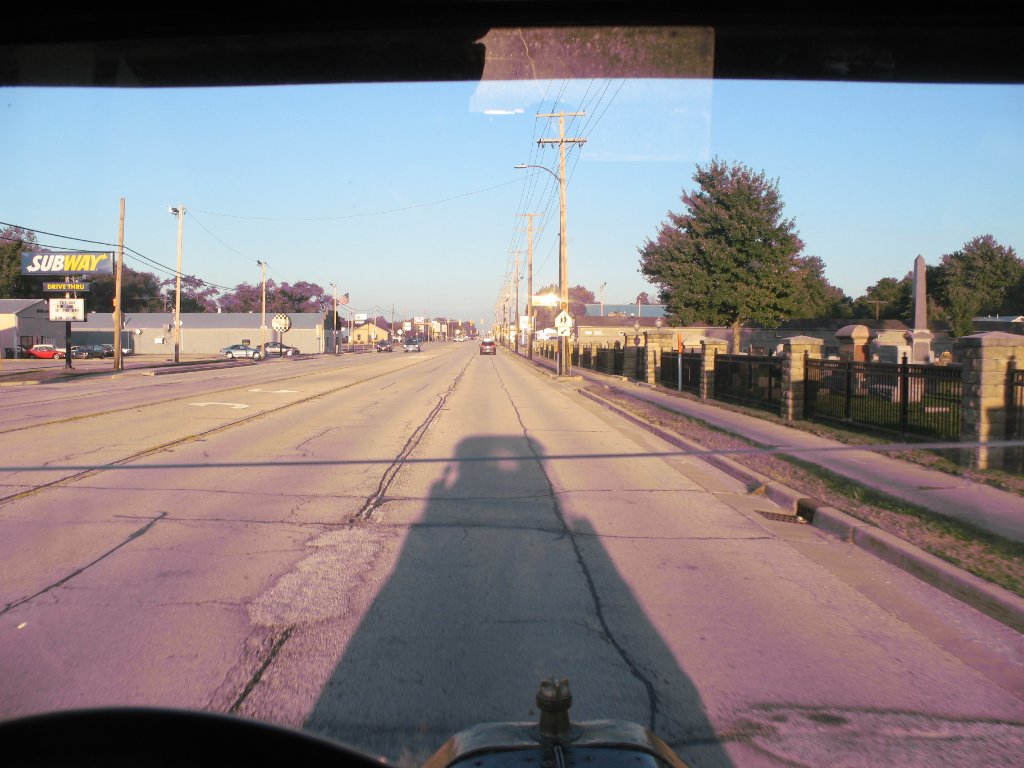 Evening was coming on and it was past my usual dinner time. There were also barricades in the highway and a big ROAD CLOSED sign. Across from the parking lot where I stopped was an old style tavern, with a bar and a grill, and dining tables, and the Cards and Cubbies on a big screen TV. I ordered a burger and fries, and while I waited for my food one of the local guys told me how to detour around the several bridges under construction. He even drew a little map.
