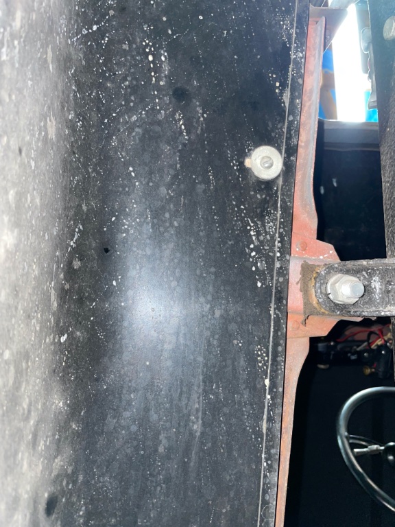 Once you have the splash shields in place, anchored to the front and rear fenders, and running boards you add fasteners.