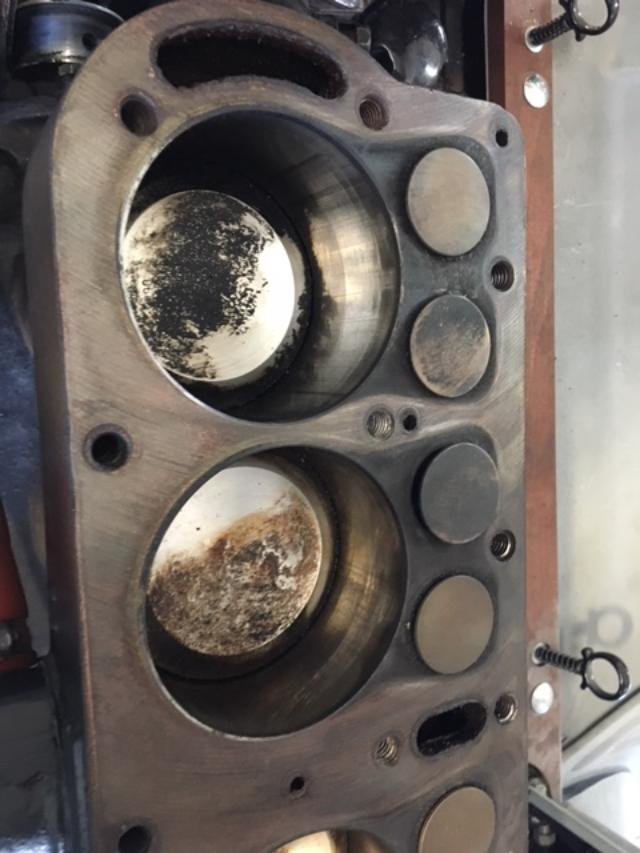 Here's the news as of today, the evidence shows that the motor has been recently rebuilt with new .060 pistons and valves, and is very clean, and the two weepy spots looks to have been repaired at some point and tiny holes have re-emerged. The head was clean and crack free and so is the deck.