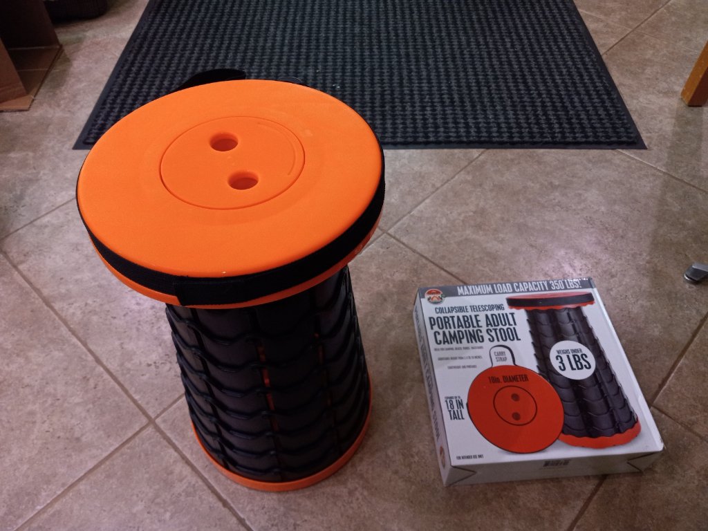 The chair makes a package a little under 16" long, easy to stash on the running board or in the trunk. They make a chair that sells for less than half the price, but it makes a much less compact package, three feet long.