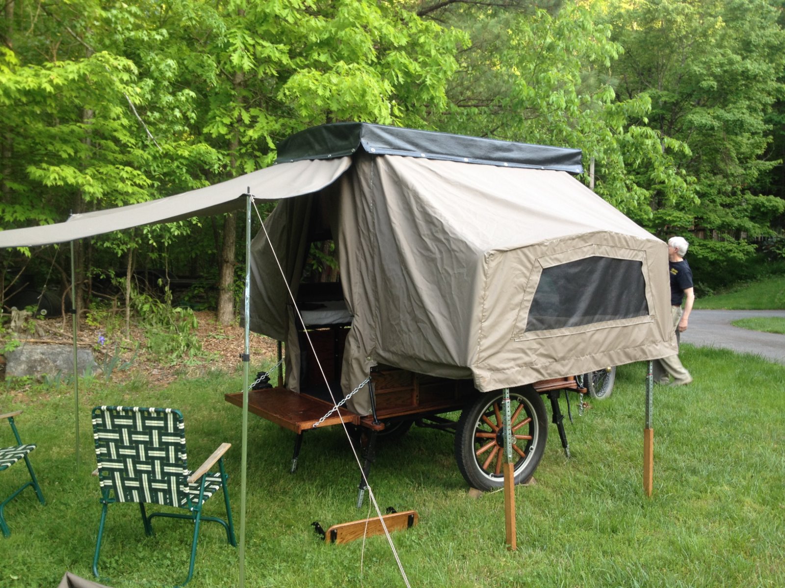 If you put an extension on that box that slides out when you park, you can add a canvas top and you have a portable tent like Dean has. He does not have to pull his trailer any more if he does not want to. I do not have a picture but maybe Dean can add one.