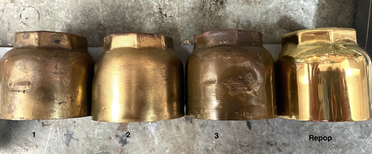 Have a group of 4, the shiny one on the far right is the current reproduction, the others appear to be originals, which 1, 2, and 3 are 'real' 1912?