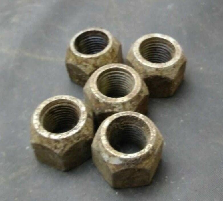 The lug nuts are from WW 2 jeeps. I have a couple of them and would be interested in buying the 5 from you if you are interested in selling them. $1.00 a piece.