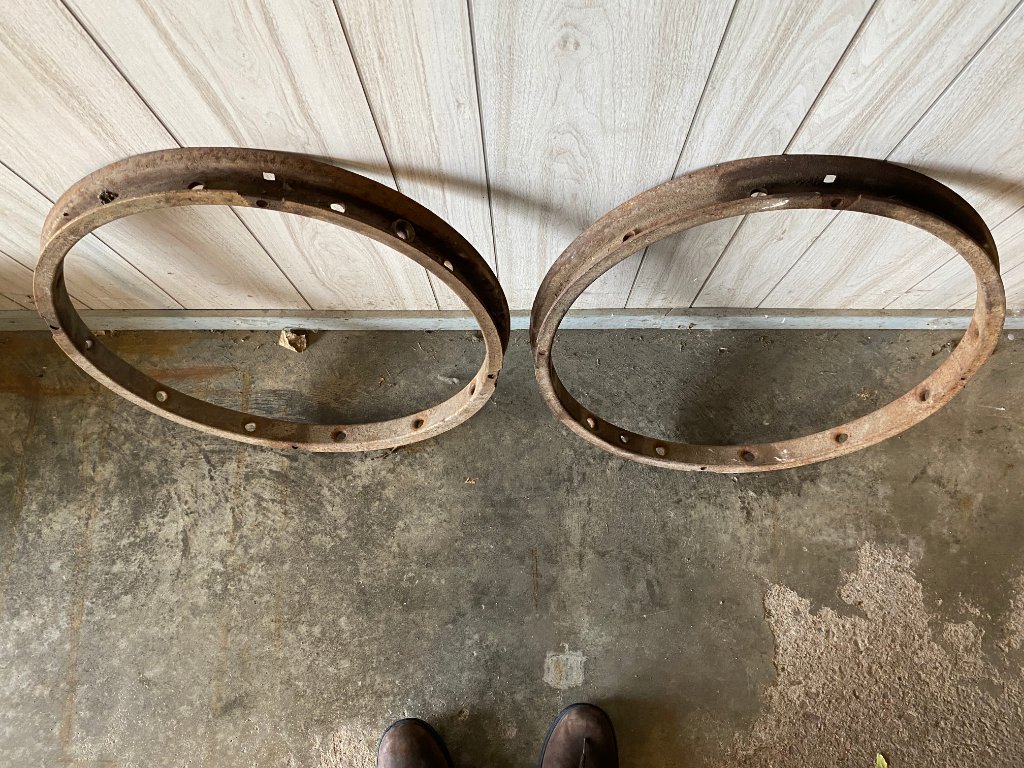 If the front has 30 by 3 1/2" tires and those wheels are the same size, then you will need rims to fit the front. Those are clincher tires. They should match so you only need one spare to fit any of the wheels, so you will also need a rim for the spare.