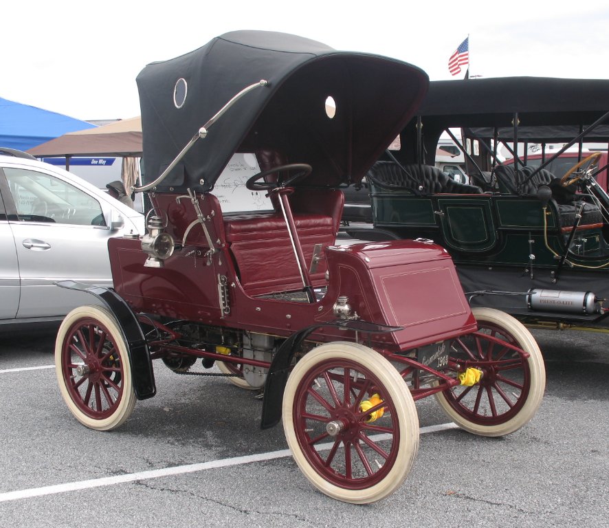 That distinctive dropped-center front axle says Locomobile. This one is 1910.