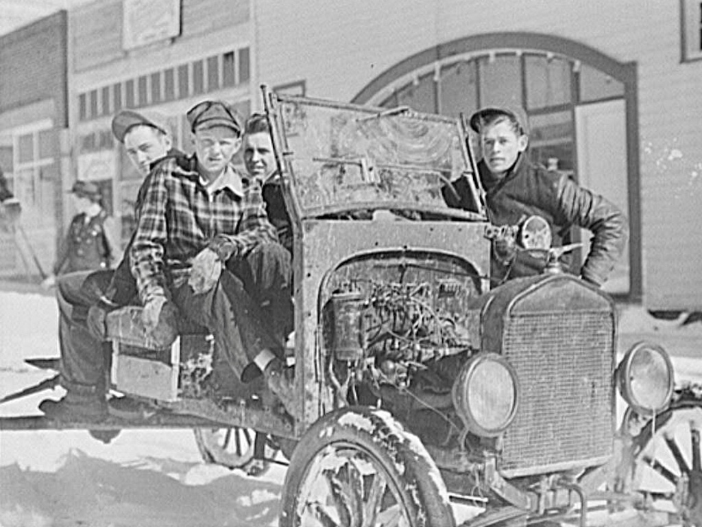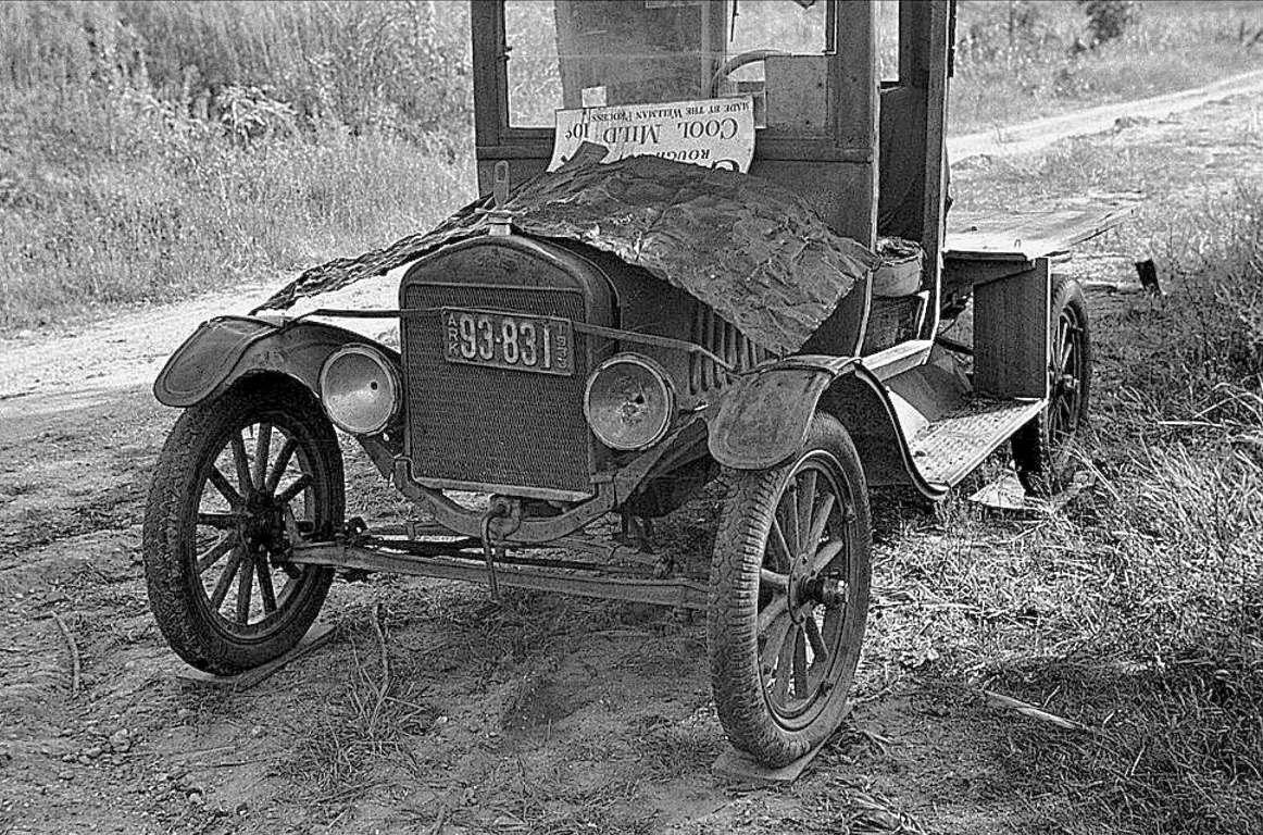 I suspect that most of those pictures were taken during the Great Depression. The T's looked very worn and some had mattresses and other household items on them. I also notice some early 1930s cars in the background. My dad had a 1936 Ford with a greyhound on the hood. I think that was a Lincoln emblem. Quite popular during that time period.