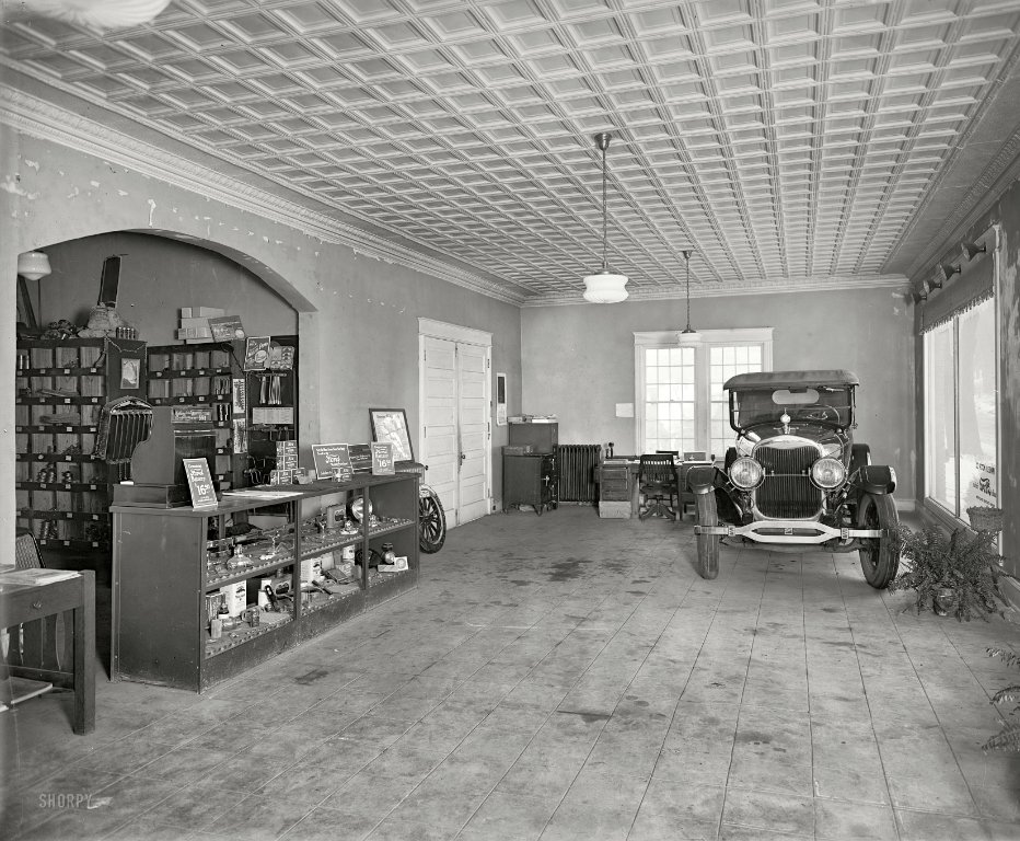 The digitization process of old photos usually results in the loss of some detail. The quality of the digitization program as well as choices made by the system operator make a huge difference in the final result. Compare the detail quality in the photo of the T coupe and boy with zooming in onto the non T coupe that ran over a small tree. The pixelating on clothing and faces is quite evident, and horizontal and vertical lines show far too many pixel boundaries! (The looking through window screen effect!)