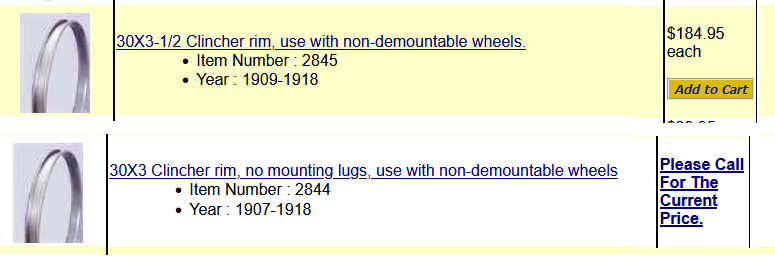 Kevin and others are correct. I purchased only the McLaren Wire Wheel business from John McLaren 5-6 years ago. American Vintage Rim is owned by Mark McLaren, John McLaren’s son. I currently produce 30x3.5 and a limited number of 30x3.0 clincher style McLaren Wire Wheels. Lang’s carries the clincher rims which were produced by American Vintage Rims. I use the same clincher rims but do not sell the rims unless they are part of a complete McLaren Wire Wheel or an occasional Buffalo wheel that I am restoring for one of my regular customers. Thanks, Mike