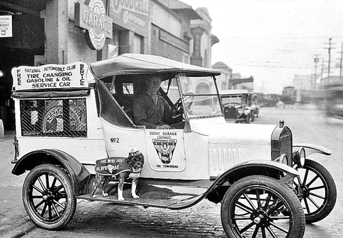 The towed car looks to be pre-1915, so pre center door. Could it be a custom Australian body? It also looks like it veers in at the front so maybe it is a wider commercial body.