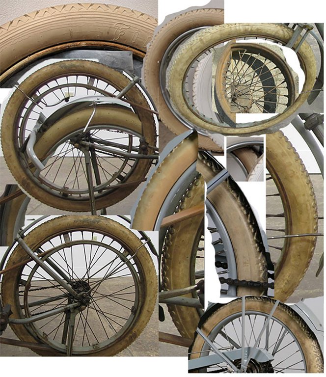 This is a photo of my 1915 touring with black tires that I painted white. They have held up well but the paint can chip if something hard hits the tires.