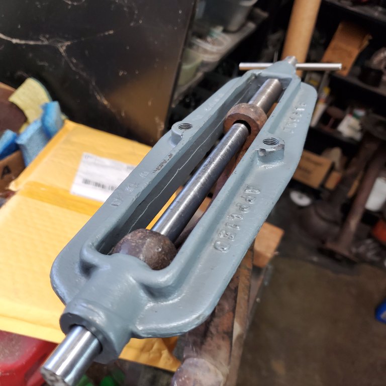 I think I'll make a thinner rod and pilot to fit an axle that doesn't need the threaded hole repaired. That way I can clean up the thrust surfaces without disturbing existing threads.