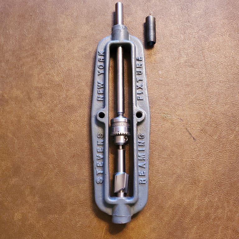 For background, I was a watchmaker, an engineer and now make precision parts for carbs. I mention this so as to negate the impression that I don't appreciate good tools or that I don't mind using crap tools. I hate crap tools. I love good tools and will not tolerate tools or machinery which do not do what they're supposed to do. And yet, I am very happy with my well-used Stevens tool. The Stevens tool is a practical tool used to repair the axle while still in the car. It's not a Bridgeport or a particularly precision tool...it certainly is NOT going to put the hole back where it should be! The reamer IS GOING TO FOLLOW THE WALLOWED OUT HOLE. Period. There is no precise way to put that hole REALLY back to where it was when it came from the factory. It's going to make a tapered hole, a tapered bushing is going to be inserted, and the kingpin is going to draw it down into the hole and that bushing WILL be in line with the threaded bottom hole. It just is.