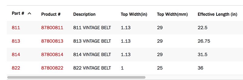 I checked the Gates site for Vintage Automotive belts. This is what I found: