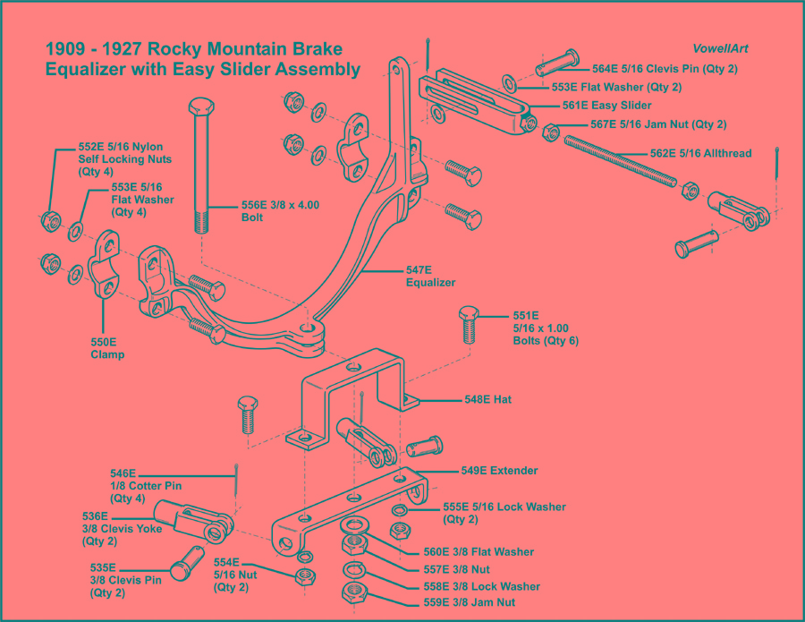 The sliding adjuster slotted end mounts to the upright arm of the equalizer bar that swings from the Ford cross shaft.