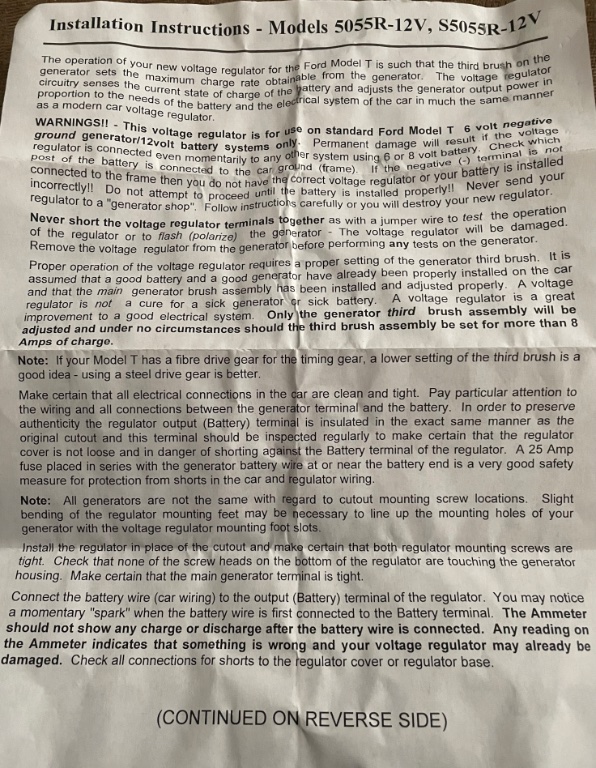 I'm sure the Model A guys are having the same problems. I have a Model A myself, but had previously installed a Fun Projects regulator before the business was sold. It's always worked great and I'm sorry that other T and A guys are now unable to buy from FP any more.