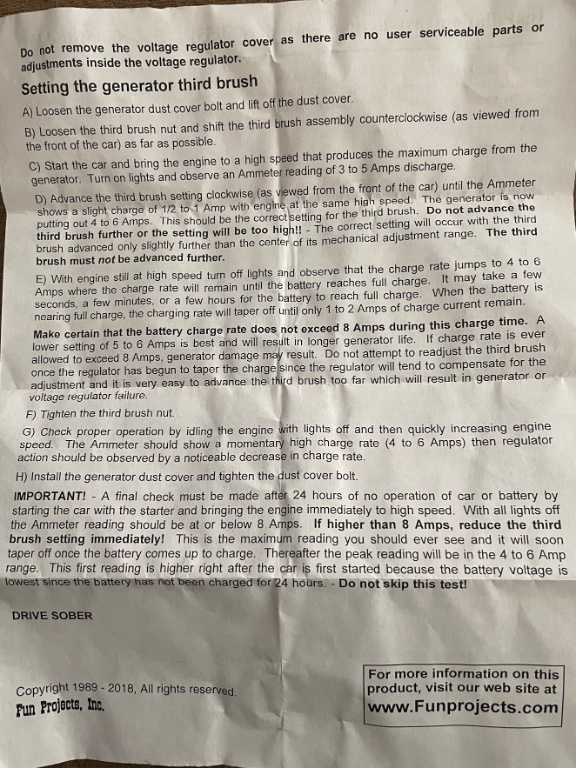 Could someone send me or post the original instructions for a Fun Projects 6V regulator? Thanks!