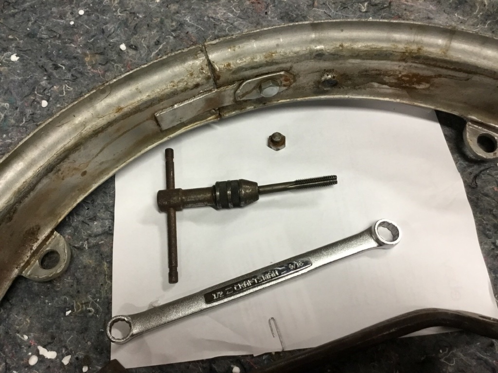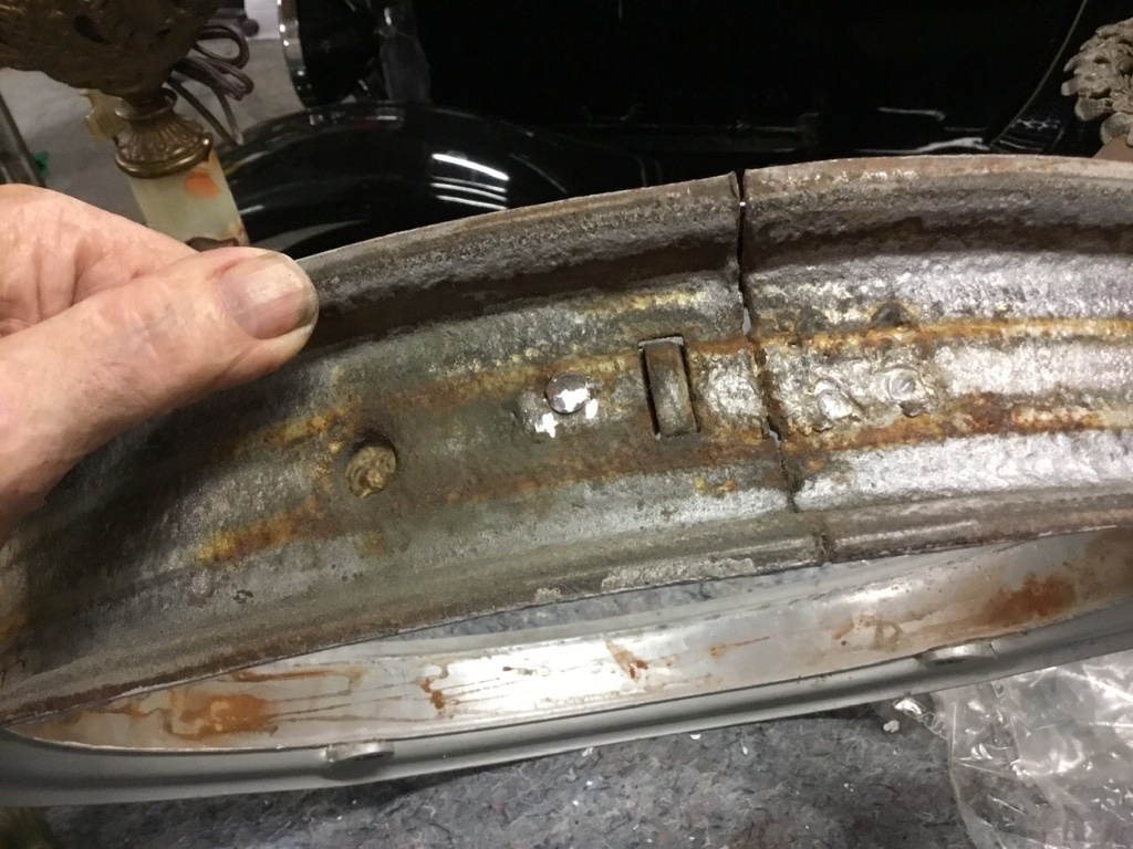Jim, Yes, the latch 'bar' is on the rim; its just that the raised part of the rim that the hole in the 'bar' fits over and the locking screw goes through, is oversize and an original locking screw won't come close to catching threads. Of course, i can use an oversize bolt that the rim hole is now threaded for, but it won't look original.jiminbartow wrote: ↑Wed Mar 08, 2023 11:57 amYes, In my opinion, it can be salvaged. When you get a tire on it and inflate it, it should straighten out. Do you have the latches? Here are several photos of how I repaired the latch locks on all five of my rims that broke off after being rusted in place for many years. Jim Patrick