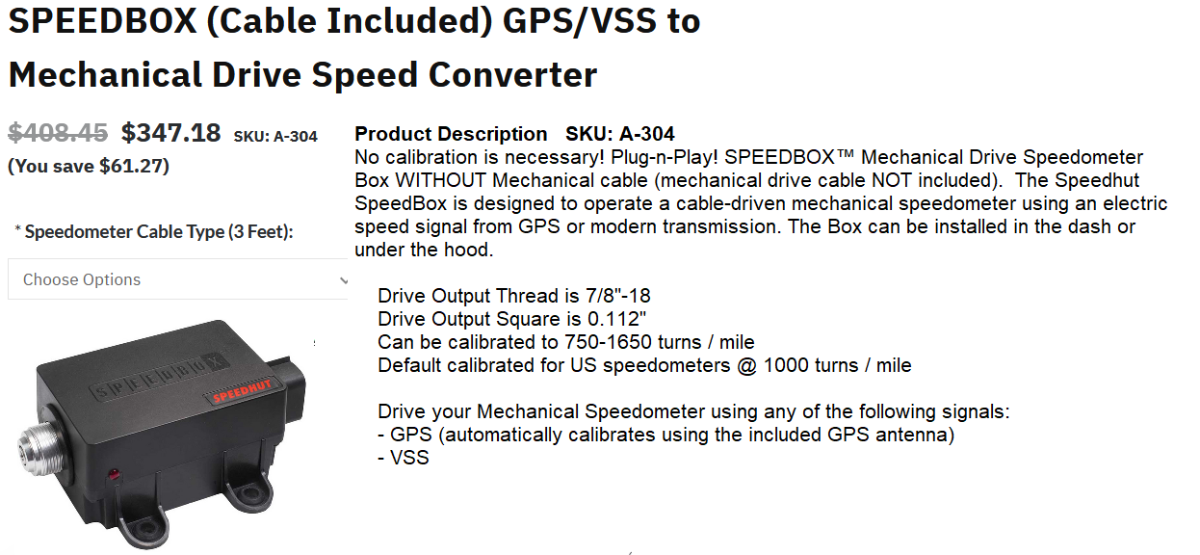 I was going to look into this awhile ago - might work with a period correct speedometer. The only issues may be matching up a speedometer cable and 12v.Roger Byrne wrote: ↑Sat Mar 25, 2023 8:02 pmThanks for the comments but I'm not talking about a phone app. I'm wondering about the GPS units that look like a speedometer used on boats and ATVs.