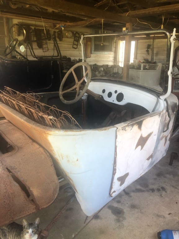 I had a T chassis that I used the motor from for another car then I picked up what was left of an Overland touring car for $100, which was the front half of the body, frame and radiator shell. I got a motor at Chickasha a few years ago but I’m getting closer to finishing.