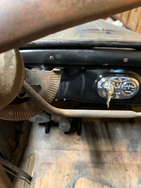 I haven't had it running since I replaced the column. I may be able to find time this weekend to do that. The car is in such a bad place in the garage that I'll have to climb over it to see if the throttle plate is opening all the way. (I need a bigger shop)Norman Kling wrote: ↑Thu May 04, 2023 4:29 pmWhen you push the throttle lever all the way up, is the valve in the carburetor all the way closed to idle? is the idle screw against the stop at the carburetor and when the engine is running does it idle at a very slow speed as it should? That is the point at which it should be correct. Next, with the engine off,pull the quadrant lever all the way as far as it will go. Does the carburetor valve open all the way? If so, one or both of the eyelets either on the column or the carburetor is wrong. Note some carburetors have a different length at the carburetor. If it is shorter it would open the valve with less movement of the rod in the column. If the carburetor valve is correct at idle but does not open completely when the lever is down as far as it will go, then the rod is hitting something along the line. Either something between the steering column and the block, or something inside the block. Sometimes if not bent just right it will scrape inside the block or valve cover.