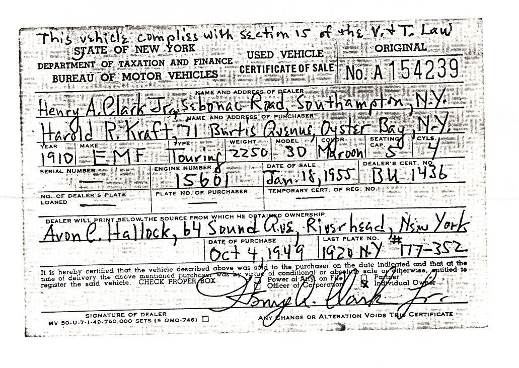 I helped a friend buy a 1914 Model T from the original family two years ago. When he was looking at the car, he was concerned that the engine number did not match the number on the current title. The family had a lot of paperwork from new, including the original title and the original bill of sale! Again, the number on that title and bill of sale did not match the engine number but did match the current title. I told my friend to check the dash plate, and surprise! That was the number of the original title and bill of sale from the dealer. And it was indeed an aged and original dash tag. The car had never been restored.
