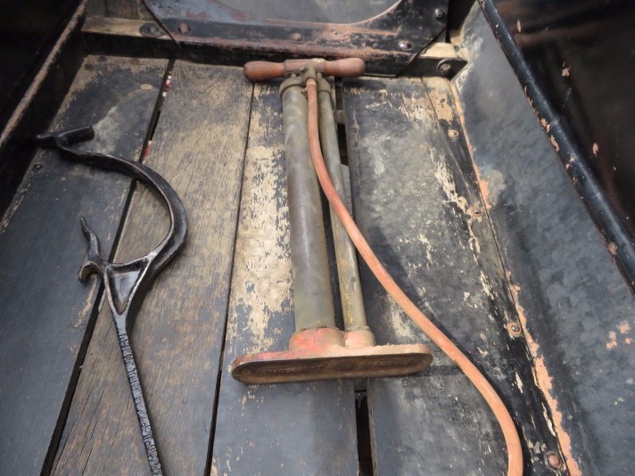 Also, a couple of the excellent photos show an odd shaped rod (appears to be a casting) laying on the back seat floor boards, next to the tire pump,...??? Looks familiar to me like I've seen one before someplace, but can't place what that is,...???