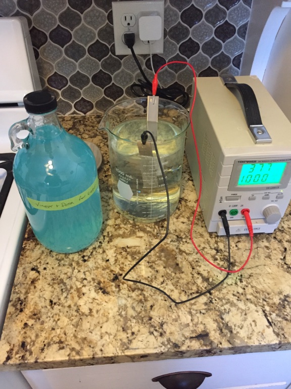 Lookin good Corey! This is my setup from a while back using the same vinegar based solution. I made up copper and nickel with hopes of plating carburetor parts… but turns out my 1A power source only has the oats to plate small coin sized parts. I’ll have to step up my power and try again…