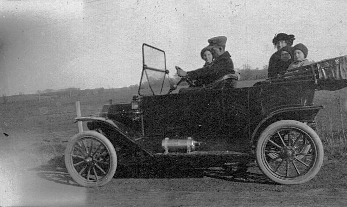 Appears to be a rather early '09 with covered running board with the brass trim too. Zooming in can see the third pedal shaft, driver's foot on that brake pedal so it won't roll.... so don't think it is really early car.