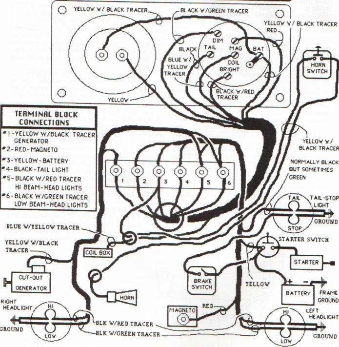 I'm preparing to rewire this 26 TT. The existing wiring is a bit of a conundrum. Let's start with the ammeter to switch panel. all the diagrams I've seen have the battery wire directly to the ammeter, then jumped to the switch, then back out to the car. (Solid Yellow to ammeter, Yellow black jumper to switch, Yellow black to wiring block on firewall). The existing wire has the jumper from ammeter to switch, but both hot wires directly to one side of the ammeter. The post looks to be designed for this purpose. Should I rewire per all of the diagrams and ignore this anomaly?