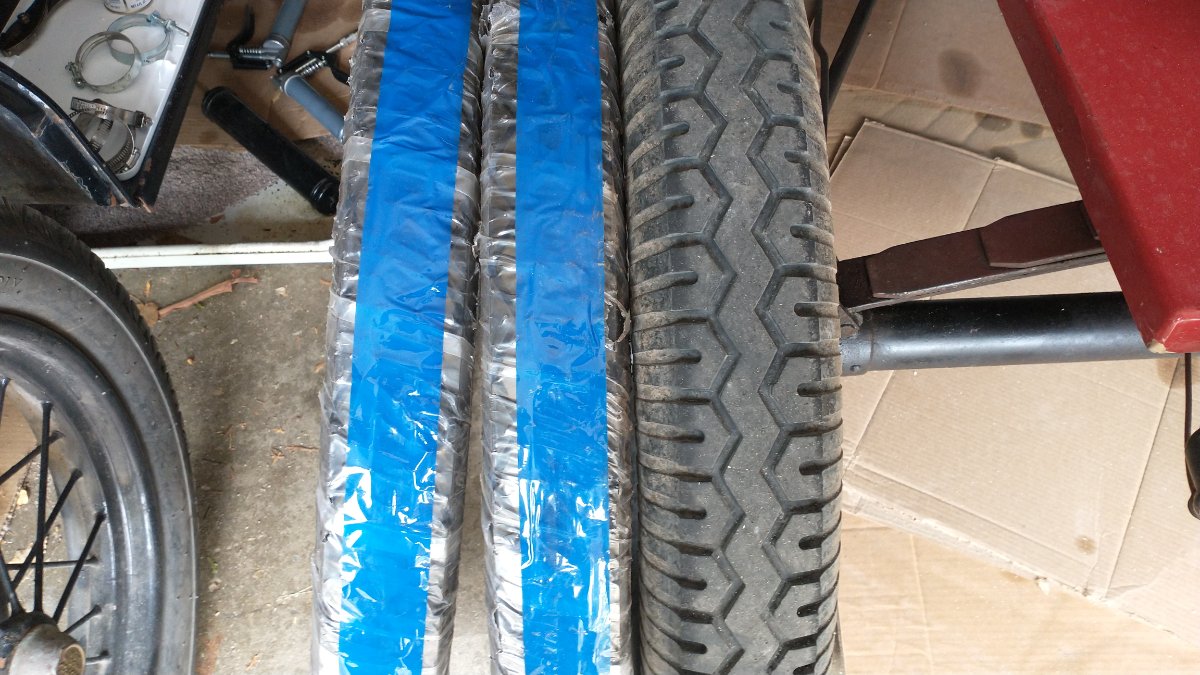 Dave, wait till you fit and inflate before you worry about size. Universals are sold as oversize, so the OD of them is likely a little bigger. The Blockleys I saw on our last national rally were looked al least quite adequate, fatter than Wards and Firestones, and the tread to the edge makes them look even more adequate.