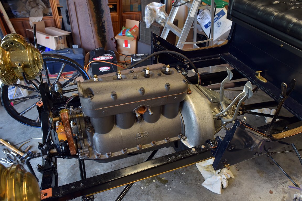Preparing to pull the engine in my 1912 Comm Roadster to address magneto issues, make repairs to hogshead, and putting pan on a straightening table. I had hoped not to go to this length, but found it necessary. I hope my car turns out as nice as Richard's (who has been most gracious in answering my pestering questions). I have the headlights sitting on the forks while I clear a place to safely store them (man, my shop is cluttered up). Certainly, they will be out of the way when I go to lift the engine out. Fenders, splash aprons, and hood are at the paint shop. After I am done with the engine and it is back in the car I will finish my new Stutzman rebuilt wheels and get them ready to go to the painter.